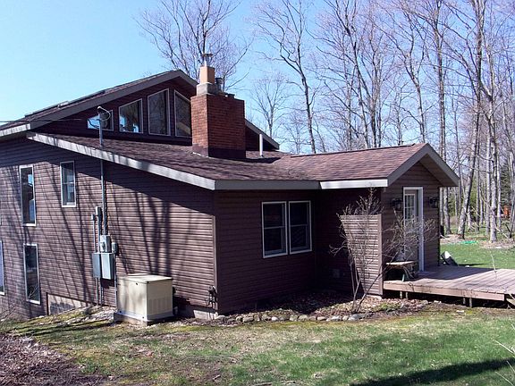 Prime location with 173' on South Manistique Lake. Enjoy this lovely 3 bedroom and 2 bath home that offers million dollar views of the lake, sandy beach, and sunsets. This home was completely remodeled in 2002, wood & tile flooring, tongue and groove, Andersen windows, kitchen and more. There is a fireplace in dining room and a wood stove in Great room. There is a detached pole building, shed,storage shed by lake, and wood shed. The home and buildings are situated on 2 beautiful wooded lots. #5031