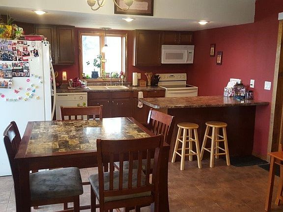 Country home less than 3 miles east of Birnamwood, situated on 1.85 acres! Main floor offers; spacious eat in kitchen, nice sized living room with pellet wood fireplace, main floor laundry and a den/bonus area off living room. Master bedroom has 1/2 bath and balcony. Updated siding, roofing, windows, doors, and kitchen! Open concept! Two decks! Updated furnace. Detached 2 car and 3 car garages. Come SEE!!