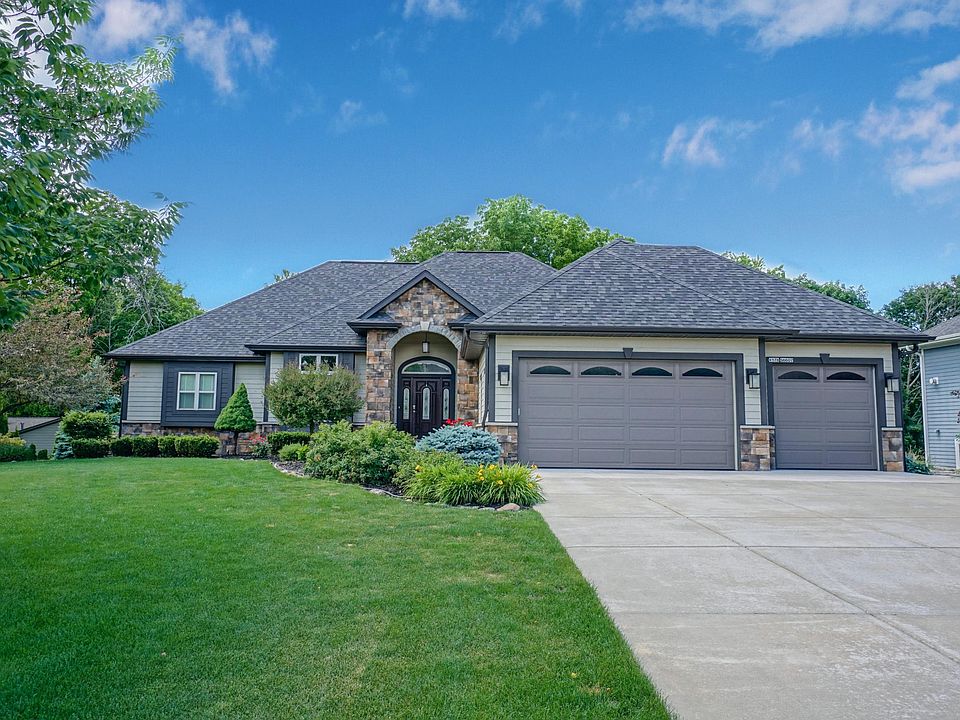Remarkable split bedroom ranch home with exposed lower level in a convenient Muskego neighborhood! Enjoy this great setting on a cul-de-sac street with many mature trees. Interior is loaded with upgrades throughout. Large great room features gas fireplace with tiled surround. Impressive kitchen offers large breakfast bar, center island, pantry, and appliances included. French doors to den. Luxury master suite with makeup area, walk-in closet, and master bath featuring dual sink vanity, tiled shower, and separate tub. Huge mud-laundry room. Open staircase to lower level with full size windows, ready to finish. Home is certified Energy Star rated. Huge 3.5 car insulated and drywalled garage. Relax on the back yard deck or lower patio area with built-in firepit. Excellent location!