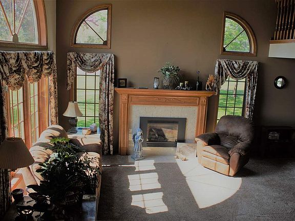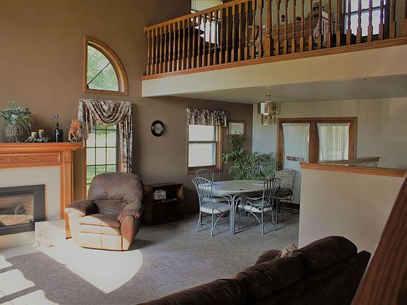 A Beautiful Home for You and Great Home for your Horses! Quality 2 story home with natural gas fireplace in great room. Kitchen has beautiful oak cabinets. Main floor bedroom has two closets. Upper bedroom has walk in closet. Garage is complete with drywall. Horse barn is insulated and heated with 10 stalls and tack boxes, a large workshop and hay loft. There is a 60x100 riding arena also insulated and heated. Ford 8N tractor w/spring pull to maintain arena grounds. Barn has office, sitting area, restroom. Be creative w/barn to have your dream business. Has/can be zoned agricultural/business.