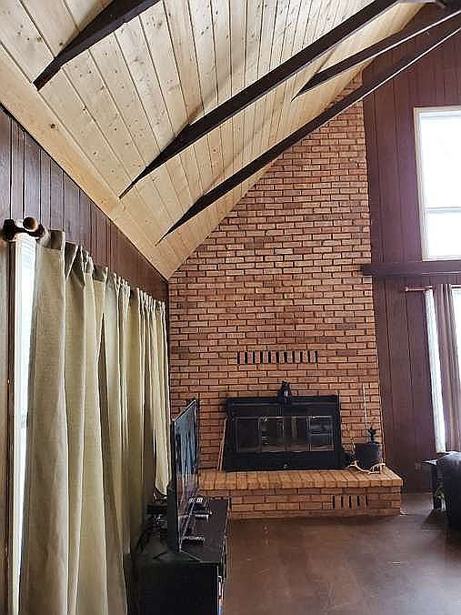 Chalet on South Manistique Lake. Featuring 3 bedrooms, 2 baths, attached garage with loft. Interior boasting with 20 ft cathedral pine tongue & groove ceilings. A wood burning brick fireplace, all new plumbing and Geothermal unit for heating & cooling. The pine ceilings carry throughout the first floor. Home has been enjoyed year-round with a sandy beach, great fishing off the dock or in Wolfe Bay. Beautiful lawn studded with a few Birch trees allowing for a fantastic lake view from the interior. Full house Generac Generator & appliances included