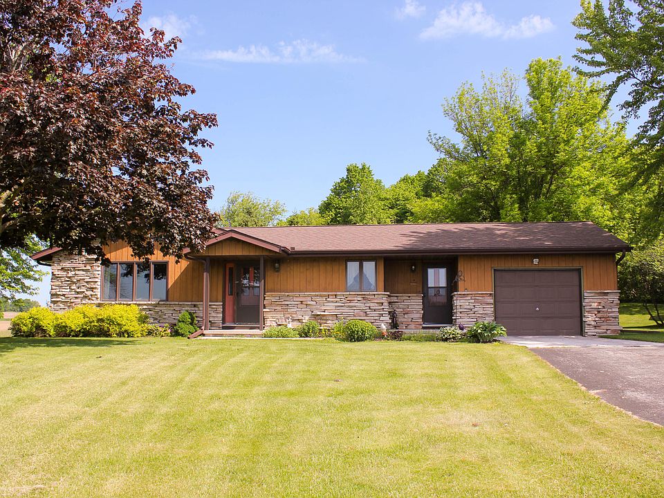 Lovely 3-bedroom, 2-bath ranch on 5+ acres in Calumet County. Gorgeous landscaping outside. Inside, find a first-floor laundry, double closets, a breakfast bar in the kitchen and sliding doors from the dining area to a deck overlooking the wooded backyard. Two detached buildings, including one with two overhead doors, insulated and heated.