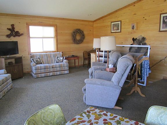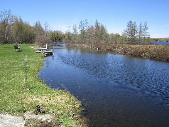 #4660 What a view!!! with this open glass concept. you can see the canal and South Manistique lake from the livingroom, and both the decks. 2 bedrooms, 1 bath. Very clean, and cozy. large front yard for year-round activities. and a large pole-barn for storage. The South Manistique lake is a all-sports lake, and has a large vary of fish, the canal is known for bass, and bluegill. Fish off the dock pad in the yard. One of the pole barn doors are 10 ft high the other is 8 ft high for larger items in pole barn. would also consider land contract with large down payment.