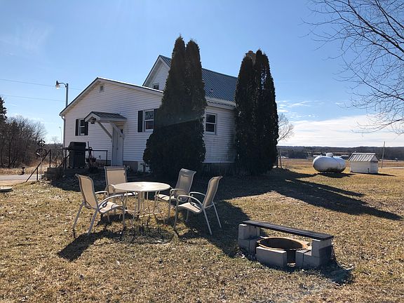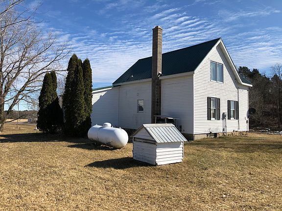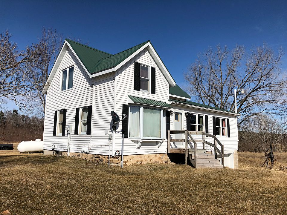 Older Farm House, half built in early 1900's and half built in 1950's, on 77.18 acres. New Energy Efficient Furnace with Heat Pump and Central Air and air filtration system. Very energy efficient. New hot water heater, new plumbing, newer septic tank. All new appliances. Outbuildings for storage. PRIME HUNTING LAND. Approximately 49 acres wooded, 25 tillable, 2 wetland, 1 yard. Comes with 1 sturdy tower stand and a few hunting blinds. Lots of berries, mushrooms and asparagus and plenty of firewood if you like to cut wood. Neighbor farmer will rent tillable land if you want which pays the taxes. Close to town and very close to main roads but in the country enough to be quiet and peaceful.