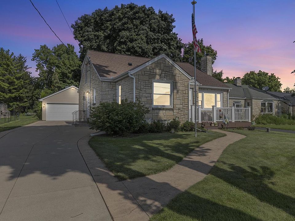 Welcome to this charming Cape Cod-style home with peaceful views of Lake Muskego. A welcoming front porch invites you to relax and enjoy the serene neighborhood. Inside, hardwood floors flow through an updated open-concept kitchen with modern appliances. The home offers four bedrooms, two beautifully remodeled bathrooms, and a finished lower level for extra living space. Recent updates include a new roof and newer windows throughout. Outside, enjoy a detached garage with a 9x7 door for backyard access, an additional storage shed, and a cozy firepit. Conveniently located near parks, restaurants, freeway access, and Fleet Farm, this home perfectly blends comfort, style, and convenience.