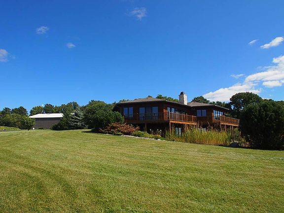 Enjoy panoramic views elevated 175 feet high above nearby Neosho Millpond. 110 degree wide angle view to the SW towards Neosho village & 12 miles to Clyman town at the horizon. WI agricultural beauty at its best viewed from your wraparound deck surrounded by fields, valley, timbered hills & lake in the distance. 29 acres w/wildlife is just 7mi from Hartford. 3600 sq.ft. contemporary home with many unique design features. Open concept w/stone fireplace, big kitchen and dining room, 3br + private office.