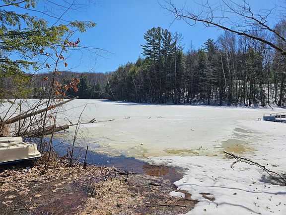 TEAL LAKE RETREAT is ready to be your recreational getaway. The 1999 Breckenridge Park Model Mobile home has been well maintained and offers central AC along with a ducted LP furnace. The patio door in the living area offers a great view of your lake frontage and firepit area. The front bedrooms are stacked double bunks, each with separate private entrances off of the main the living area. There is a bathroom with a shower. The rear bedroom has a queen size bed, closet and built-in storage. The kitchen has a gas stove, refrigerator, and microwave. Being sold as a furnished unit. The outdoor privy is deluxe with a standard toilet and cistern water supply. The land is on both sides of Nottingham Rd and you adjoin Lincoln County Forest Lands. ATV/UTV, snowmobile right from the property! Lots of county land and trails to explore. Start enjoying this natural clear water lake, with a quiet wooded setting in the coveted Harrison Hills recreational area.