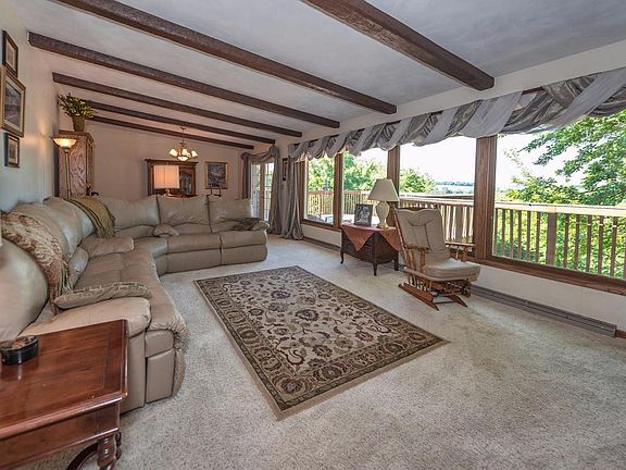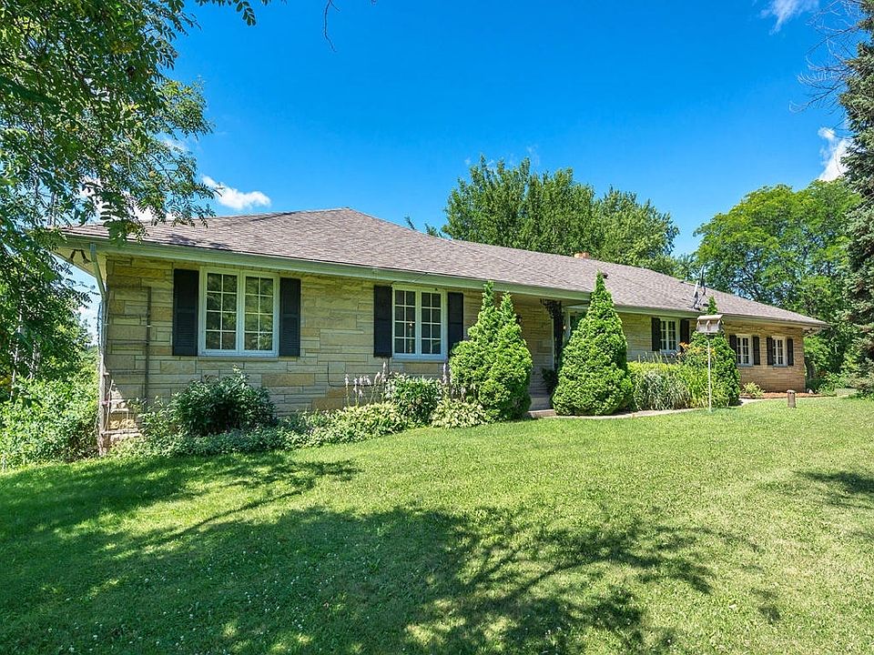 Don't miss this Lannon Stone ranch with incredible country-side views! Large eat-in kitchen, family room with natural fireplace, vaulted ceiling and built-in bookcase, dining room with French doors to large entertainment size deck. Lower level works well for an in-law suite or teen area with second kitchen, bar area, large living space, 4th bedroom and full bath. Patio doors to patio and a lower level workshop area too. The attached 3.5 car garage is ready for all your toys.