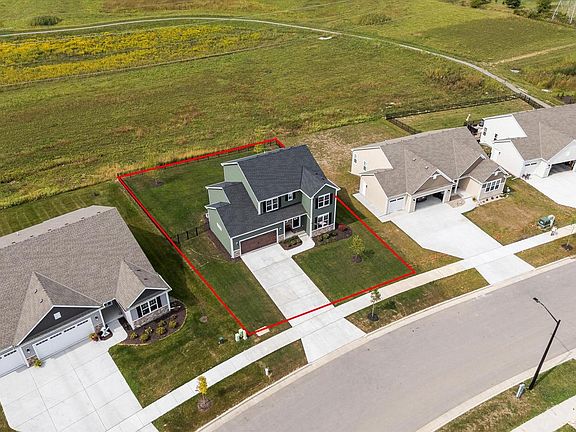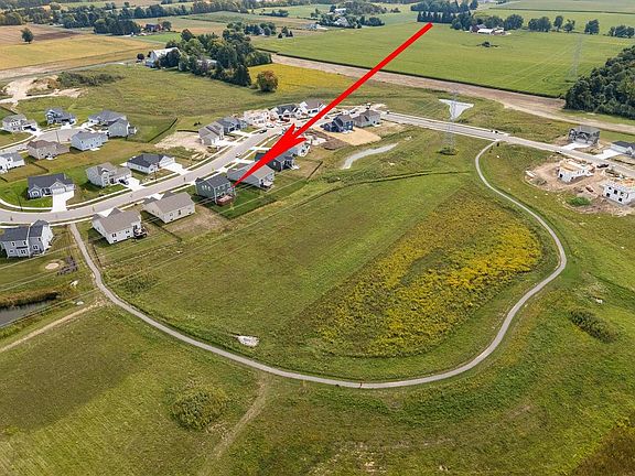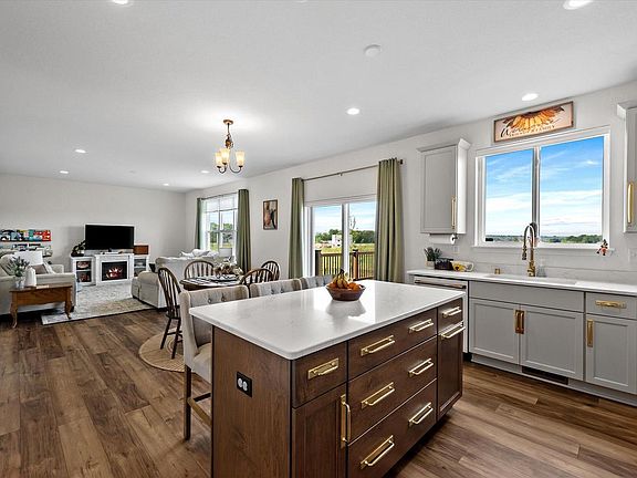 This 2024 two story home offers a top location, privacy, awesome views west, huge seller upgrades, partial exposure, fenced yard and full composite deck with storage- a must see!! Enter the foyer that leads a spacious office/Den or to an open concept kitchen & dining area w/patio doors to deck . Large entertaining kitchen w/quartz counters, snack island, walk in pantry + all GE Cafe appliances included + LVP floors. Open living room with huge windows! Main level mud area large closet + 9ft. ceilings main. The upper level offers private master bedroom w/box ceilings, 2-walk in closet + private full bath w/walk in SS. Three other bedrooms with great closet space + a full family bath SOT and a bonus 2nd floor laundry room. Lower level has a full bath rough + 2 full windows.