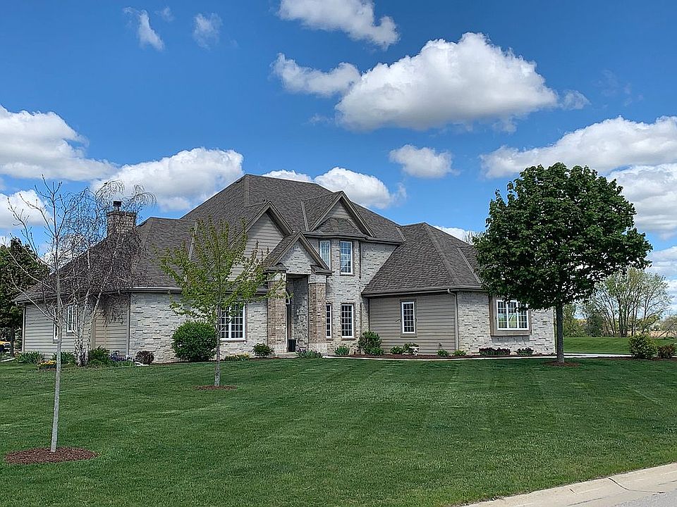 Absolutely amazing Brick/Stone home w/ views of Crystal Lake on 1.34 acre w/sprinkler system located on a private culdesac. Main level features Master Suite w/a large walk in Shower, Jacuzzi tub, walk in closet & patio doors. Many rooms have beautiful tile floors, Formal Dining Room, Huge Chefs kitchen w/quartz counter tops and tile backsplash, loads of cabinets, pantry & breakfast bar. The great room has a gas fireplace & soaring ceilings. FF laundry w/tons of cabinets & a 5th bedroom or office. The upper level has 3 large additional bedrooms & a full bath. Home also has central Vac. The LL is poured concrete w/large windows. 3 car garage has heater. Large new concrete driveway and patio poured in 2020 along with built in fire pit. Enjoy summer fun in the large pool in the backyard.