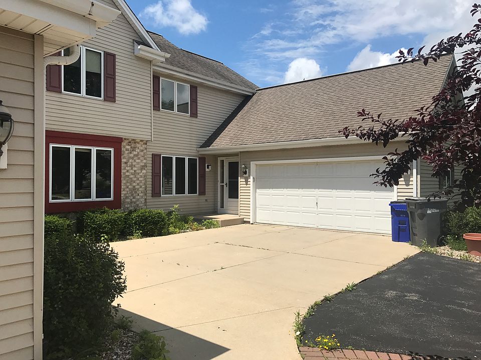 2 bedroom + 1.5 bathroom (both bedrooms are appx 13? X 15?) 1st bedroom has large walk in closet. 2nd bedroom has sliding door closets about the same size Large kitchen that is open to living room area + dining area Laundry Room with additional storage 2.5 car garage + large driveway for additional parking Full basement (unfinished) with tons of room for storage/etc. All appliances included (Fridge, Stove, microwave, dishwasher, washer, dryer, etc.) Large private patio area Within 100 yards of walking trail leading to county park Month/month lease with 60 day notice. Landlord responsible for grass cutting and snow removal. Tenant responsible for water and sewer bills and separate utilities.