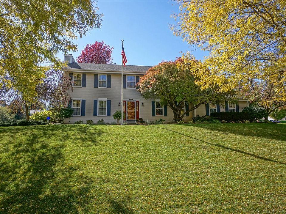 Exceptional 4BR colonial home in Muskego's Plum Creek! Enjoy this great lot with many mature trees bordering a cul-de-sac street. Spacious interior includes a finished lower level. Large great room offers brick gas fireplace. Kitchen features breakfast bar, pantry, and appliances included. Dining area with patio doors to back patio. Additional formal dining room. Main floor laundry with washer and dryer included. Nice size bedrooms on the upper level. Master suite includes walk-in closet, vanity area, and private bath. Finished lower level features a rec room with theater system included and separate den area. Recent years updates includes the roof, gutter guards, furnace, A/C, water heater, and garage door. Relax outside on the private paver patio. Excellent neighborhood and location!