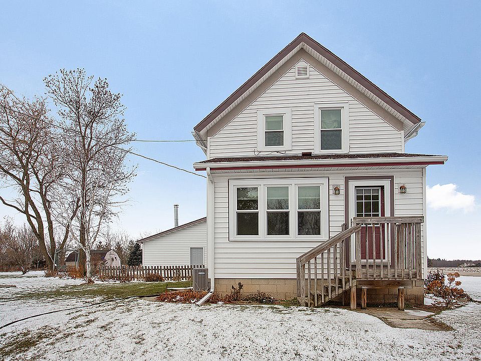 Country Park like setting brings you home to this 3 bedroom, 2 story home. Town of New Holstein. Updates in last 9 years, Natural gas FHA furnace and Central Air, flooring, insulated garage walls and ceiling, garage and breezeway roof. Updated Eat-in Kitchen with all appliances. Living room has Hard wood floors and Gas Fireplace with TV hook-up above. Bath and a half. BIG 30X36 garage could hold 4 cars. 2 garden sheds for all your yard equipment. Many Trees, Raspberries bushes, raised garden area, private patio area. Basement has been water proofed. Move in ready pack your bags and be in for Christmas.