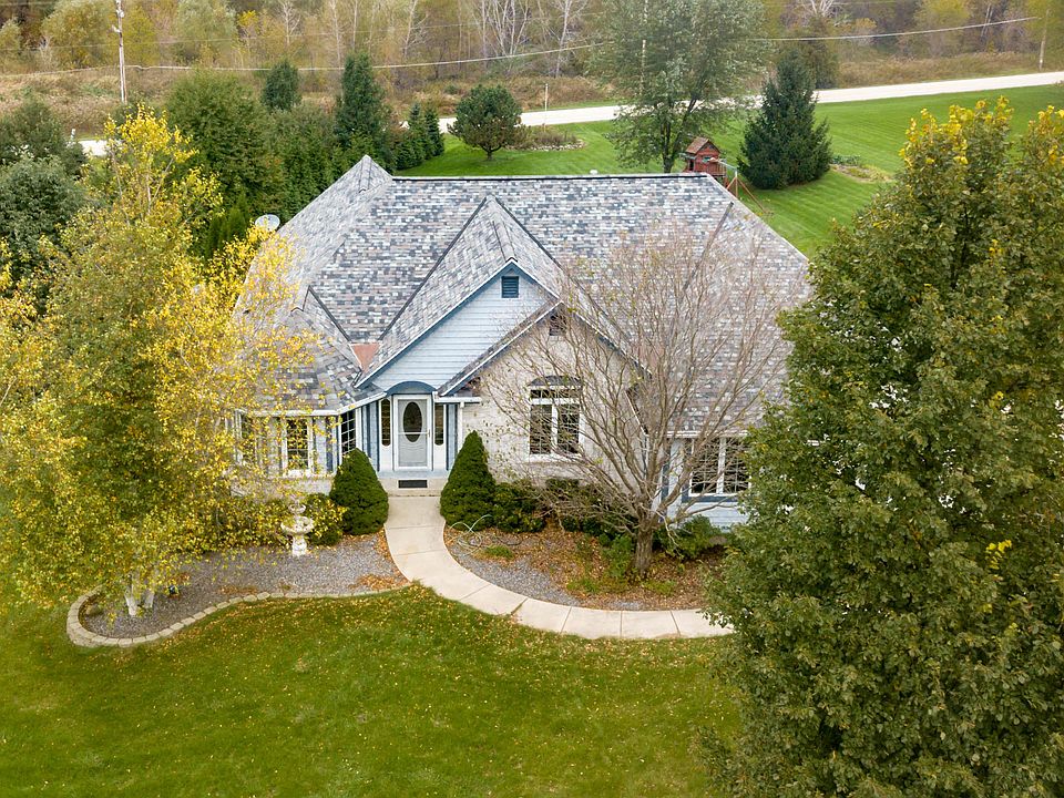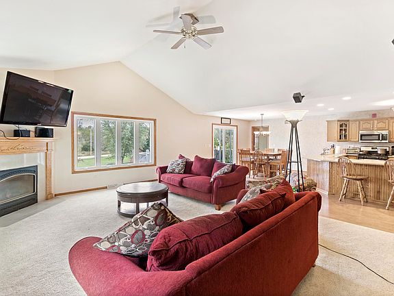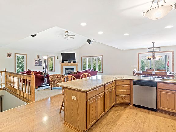 Open concept, split bedroom ranch with exposed, finished lower level. Cook's kitchen with large center island, pantry, granite counters and all appliances included. Nice dining area and hardwood flooring. Open concept to Living Room with vaulted, ceiling and gas fireplace. Private Master Suite with walk-in closet, jetted tub and shower. Main level laundry. Finished lower level with Family Room, den/office, 4th bedroom, and full bath. Fully exposed walk-out basement to private back yard on just under a 1 acre lot. Updates include new exterior paint 2016, roof 2016, furnace 2018 and $40,000 worth of new windows/patio doors with transferable warranty all done in 2018. Come see this beautiful home today!