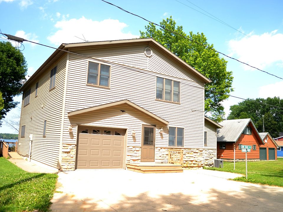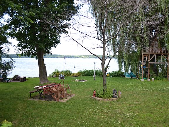 Solid built custom lake home with 60+/- ft of frontage on the south shore of Little Green Lake. Beautiful lake views from every room! Level lot, lake side deck, fire pit and easy to maintain landscaping. Enjoy this spacious 3 bedroom, 2 full bathroom property with special features including a built-in sauna and changing room off the lake side deck, office area, upper laundry, and 1 car attached garage. Kitchen offers plenty of cabinet storage, formal dining area, large living room with patio door to deck. Great property for a large family. Call for more property details