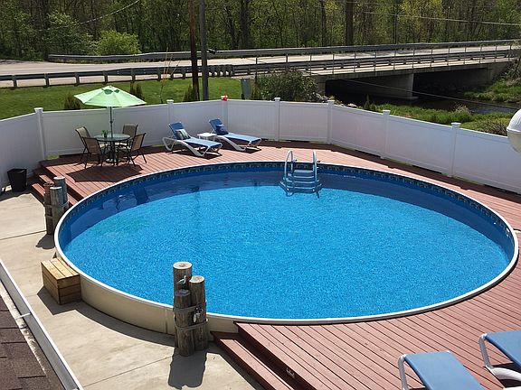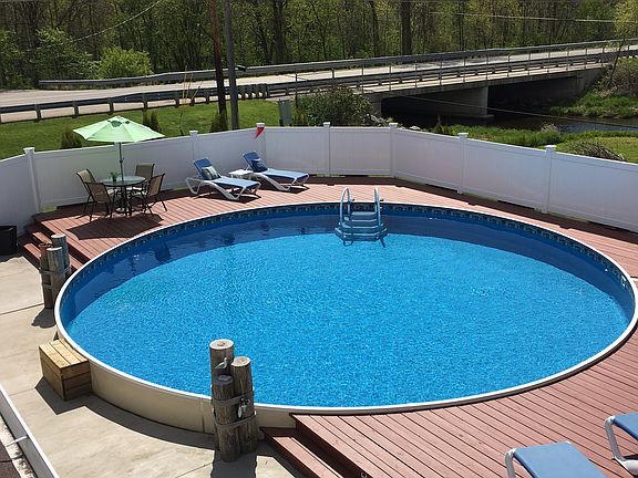 Are you ready for summer fun, This house is, fresh stain on the deck, pool cleaned and the house is move in ready. 4 Bedroom ranch with very nice entertainment spaces, Large patio, large fenced in 30' Radiant pool buried 2 feet in the ground surrounded by deck and concrete with a vinyl fence and tiki bar. Pool has a transferable lifetime warranty. 29' x 17' attached garage and a 26' x 24' heated garage in the back with an additional 13' x 7' heated area and a 26' x 13' unheated shed. granite counters in the kitchen, natural Slate floors in the basement family room (38' x 13') and a St Croix pellet stove for the winter months. Last summer we added a new Furnace and central air unit. New bath fitter lifetime warranty bath and new lifetime warranty bay window and basement windows installed in 2018. Home also has a newly renovated movie theater room in the basement.