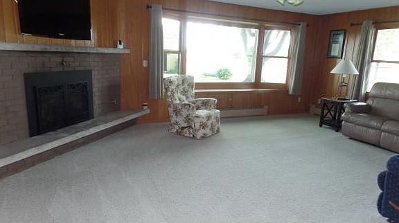 Beautiful landscaped 1.23 acre lot, towering trees, convenient location! Solid 4 Bedrm brick ranch home with gorgeous views of the yard from the inside out! 1st fl laundry, sun drenched kitchen/dining area with appliances & pretty cabinetry. Big Cozy den. 32x22 shed with workshop. Updated mound system, windows, roof, kitchen island, gas furnace & FP, insulation, doors, +. A wonderful country home!
