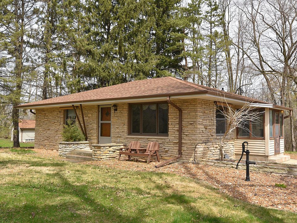 Very Private setting on 4 acres in the Village of Germantown. 2 Bedrooms 2 bath ranch with office and rec room in lower. Home has a large 22X24 detached garage, 20X32 well lite shop with heat, air conditioning, water and floor drains and it own 200 amp electrical service. There is also another outbuilding 12X16 all outbuildings have concrete floors. Plenty of driveway and side parking area for all the toys. Yard is large and flat and land in the backdrop is a rolling wooded 4 acres that is beautiful and holds a abundance of wildlife. Amy Belle is a rolling country road. Home is in move in ready condition with room for all the toys and hobbies one could dream of.