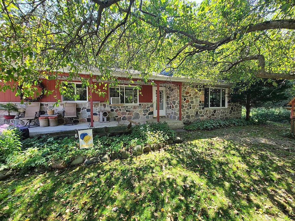Escape to this country ranch home on 5 acres. Open concept floorplan. 2 Bedrooms. 2 Baths. Kitchen has breakfast bar, pantry & includes appliances. Dining Area. Spacious Living room features split field stone surround, wood burning fireplace insert, big windows, perfect for bird watching. Convenient 1st floor laundry. Full, walk-out Basement has Guest Room, 2nd Bath & Wood Pellet Stove to keep you warm & cozy this winter. Deck. Hot tub. Attached 3 Car Garage. Shelter Logic 12'x20' Storage Shed. Garden Shed. Relax out on the covered front porch overlooking front yard. Explore & wander beautiful groomed trails through the woods. Wildlife galore including deer, fox, turkeys & wild birds. Good hunting! Enjoy all that rural living has to offer. Come home to the country!