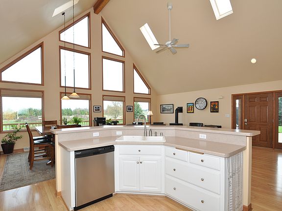 Set on 2 acres on a quiet country road, this meticulously maintained 3 BR, 3 full bath home is sure to please. Sun filled great room open to spacious kitchen with large center island/breakfast bar and dining area. Step out to over 1100 square feet of wrap around deck & porch! Main floor laundry. Master Suite with private bath, enormous walk-in closet and lofted area. Finished lower level for additional living space, full bath and separate stairway to the 3 car garage. Amazing views from every room in the house!