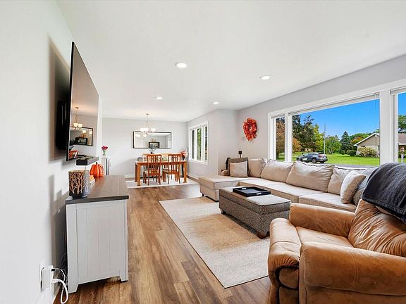 Beautifully updated 3-bedroom Ranch on a stunning private half-acre lot! Step inside to find a gorgeous kitchen with new cabinets, quartz countertops, range hood, sink, and stylish light fixtures. The open flow continues with LVP flooring, fresh trim, baseboards, and interior doors. The inviting family room features built-in cabinetry and a wine fridge. Both full bathrooms are fully updated, and the finished lower level adds a rec room for plenty of extra entertaining space, full bath and 3rd bedroom with an oversized egress window. Outside, relax on the patio surrounded by mature trees. Major updates include a brand-new roof and water heater. Move-in ready with all the space and style you've been searching for!