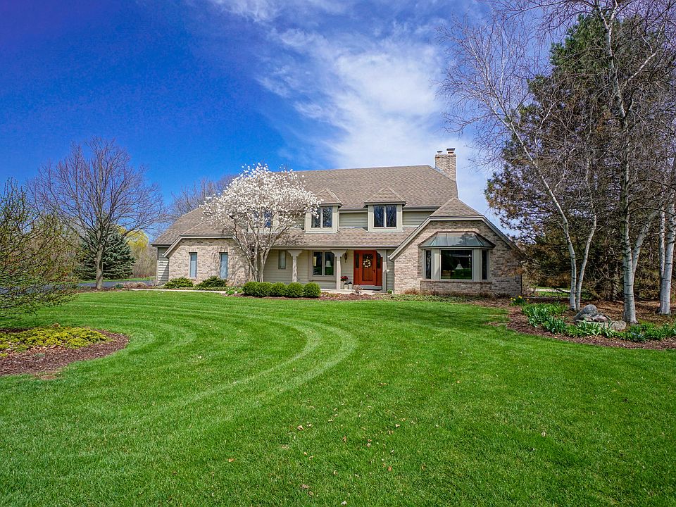 Exceptional custom built home, well maintained by the original owners in Pewaukee's Five Fields! Interior boasts gorgeous woodwork and hardwood flooring. Full masonry see-thru brick and stone fireplace between great room and sun room. Spacious kitchen with granite countertops and center island breakfast bar. Wet bar with beverage fridge off dining area. Main floor den-office could also be a formal dining room or additional bedroom. Open staircase leads to large upper level bedrooms, all with walk-in closets. Master suite features remodeled luxury master bath. Large bonus room off bedroom 3. Rec room and additional finished room on the lower level. Cul-de-sac location with an amazing back yard that borders subdivision common space with ponds and walking trails!