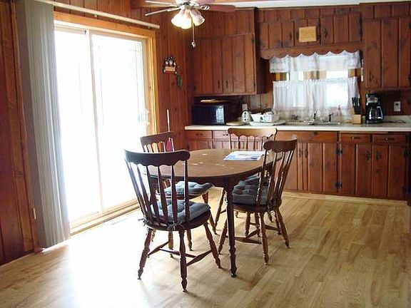 Affordable nicely updated 3 BR year round waterfront property on Sawyer Lake. New siding/roof/well/holding tank. Spacious kitchen with patio doors leading to a large deck. Hardwood flooring, sunporch & masonry FP with a pellet stove. Gently sloping yard leading to 100 feet of water frontage and a boathouse. Partial unfinished walk out basement. All this on a full rec lake with great fishing.