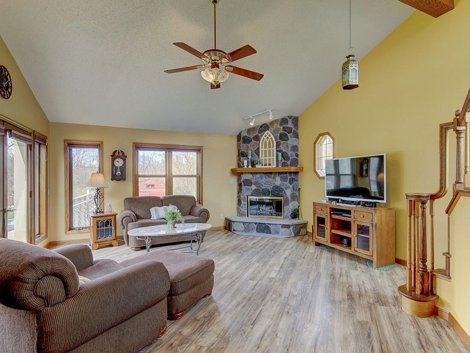 LOCATION, LOCATION, LOCATION! Tucked on a no-thru street, but near the I-43 & Hwy 164 intersection this property is the perfect mix of accessible & private. Back yard features huge sand playground, large shed/ chicken coop, & borders acres of nature/greenway that has wooded trails for walking along Mill Brook. This rambling ranch home has been updated with new roof (2015), back door (2019), sliding Anderson patio door (2019), lots of new flooring throughout (2019), interior paint (2019), & more. Family room has floor to ceiling stone gas/natural fireplace, vaulted ceiling & lots of natural light. Relax in your master suite while enjoying your private gas fireplace, vaulted ceiling & his and hers closets. Finished walk-out lower level has second full kitchen for in-law suite or childcare.