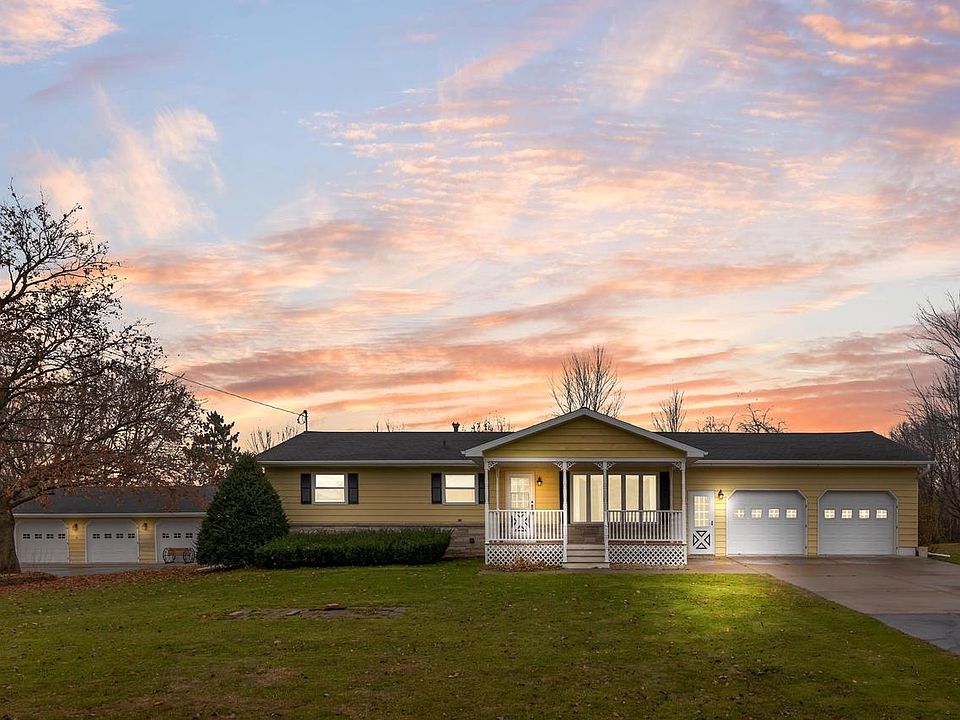 Discover exceptional care and craftsmanship in this meticulously maintained 3-bedroom ranch set on a beautifully manicured 2-acre lot in the quaint town of Poy Sippi. Enjoy a formal living room, a family/sun room with hardwood floors, and a bright 3-season patio room. The attached garage transforms into a summer entertainment space with custom screen inserts. Outside, two impressive outbuildings elevate the property: a 3+ car garage with entertaining area and summer kitchen, plus a spacious 2-bay metal building.