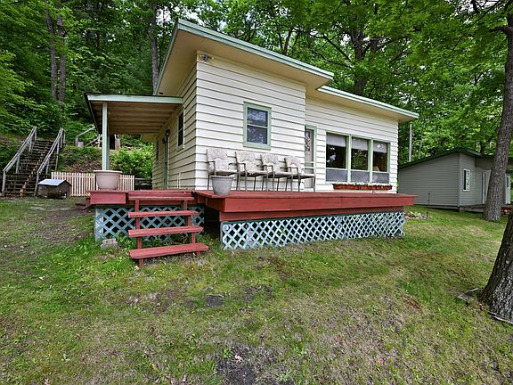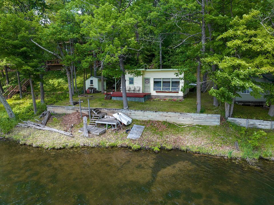 Long Lake!! Follow the beautifully canopied drive and feel your cares fade away as you arrive at this charming lakeside cabin—just steps from the water's edge. Positioned less than 20 feet from Long Lake, this 2-bedroom, 1-bath retreat offers an unparalleled “on-the-water” feel with some of the most serene views imaginable. Located in the narrows of Long Lake, the property features 75 feet of stunning low-elevation frontage and a full acre of land—ideal for future expansion with a garage, shed, or guest camper. Inside, refinished wood floors run throughout, while large living room windows frame breathtaking lake views. Outside, the porch invites you to relax in the breeze and soak in the peace and quiet. Enjoy 19 miles of boating, sandbars, excellent fishing, scenic shoreline, a full-service marina, boat-up restaurants and golf course. This turnkey getaway is your perfect summer escape.