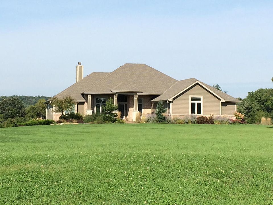 Absolutely stunning ranch home nestled upon a breathtaking lot! Enjoy unlimited sunsets overlooking over 100 acres of subdivision land w/pond from the covered porch or patio. Inside enter through grand entrance w/immediate views of the soaring GR natural stone NFP w/gas starter. Open concept split ranch boasts lrg KIT/dinette & unbelievable 4-season sunroom. KIT feat. granite counters, SS farm-sink, SS upgraded Jenn Air/Kenmore Pro appliances. MBR trey ceilings, MBA w/marble stone & walk-in shwr. LOW TAXES