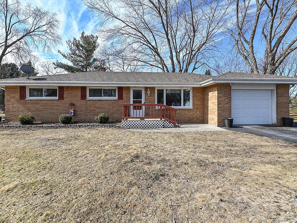 This charming brick ranch sits on a half-acre lot offering 3 BRs & 2 full BAs. An inviting front porch is the entry to the living room featuring HWFs. Down the hall are the BRs all w/ HWFs, as well as the relaxing main bath. The eat-in kitchen provides loads of cabinetry, comes equipped w/ all appliances, & offers a spacious dining area. A comfortable den provides extra living space for relaxation, entertainment, or a home office. The full basement includes the 2nd full bathroom. It is framed for a rec room & a 4th bedroom w/ an egress window offering plenty of potential for customization. Enjoy a large yard w/ saltwater pool & solid updates including water heater ('24), roof & seamless gutters ('20), electrical panel ('18), furnace ('14), windows ('08), landscaping & new patio & shed!
