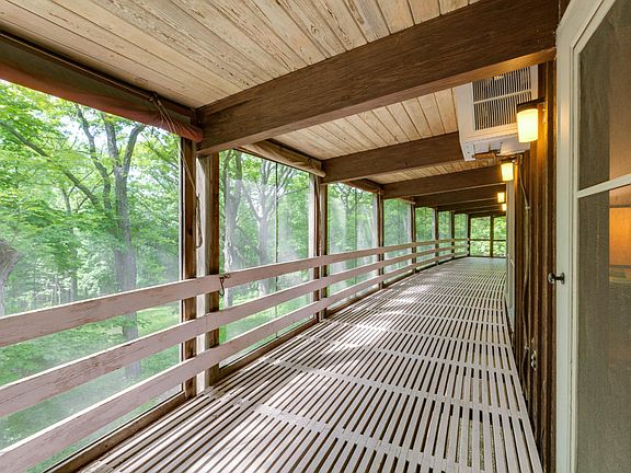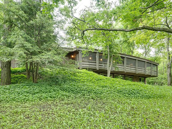 Don't miss this rare opportunity to own a totally unique mid-century modern ranch tucked into a heavily treed lot of nearly 12 acres. Designed by architect Joachim Hans Kostrau for the Dr. Kenneth & Maxine Leenhouts family, this ranch has a rather splendid gently curved exterior, with full walkout lower level, enormous screened-in porch, and a killer open-concept layout. This home was designed for the naturalist in all us, and serves equally well as a family retreat & an entertainer's dream. The property includes a pool, 5 outbuildings and tons of potential to create your own piece of paradise