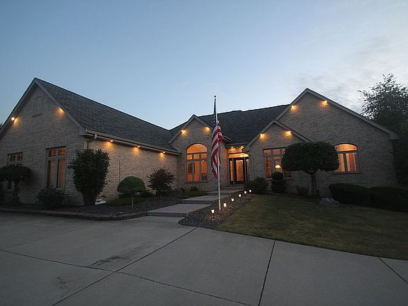 All brick ranch, open concept with 4 bedrooms and 3-1/2 baths. Split bedroom design on main level offers privacy to master suite. Master bedroom has large bathroom with jacuzzi tub and glass enclosed shower. Two guest bedrooms share a jack and jill bathroom. Granite counter tops throughout along with beautiful hickory cabinets and doors. Great room has wood flooring and see through gas fireplace that adjoins with master bedroom. 4th bedroom, full bath and office/workout room is on the professionally finished exposed lower level. Zone heating and AC so you can control main level and lower level individually. Lower level also has a beautiful full bar, exquisite cabinetry and walkout to stamped concrete patio. Oversized 3 car garage, 3 separate doors plus a shed. New roof in 2018.
