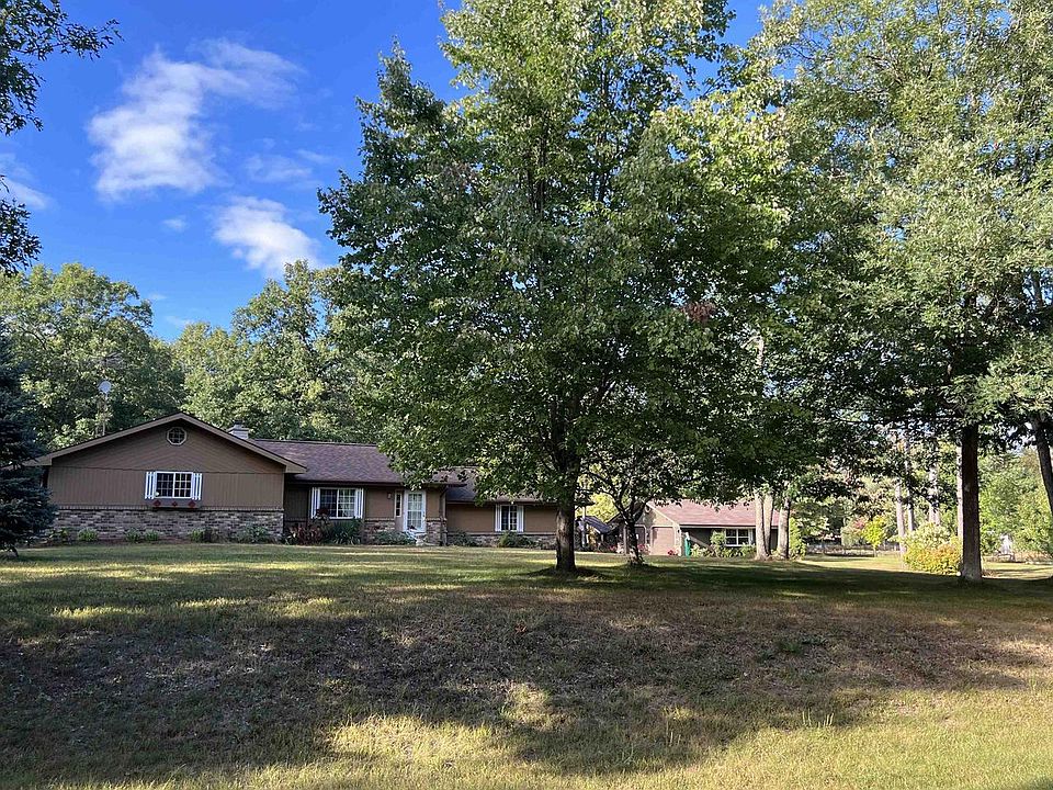 Custom Built 3 bedroom, 1 1/2 bath home on 2.75 Private Acres. This picturesque setting will be the place you love the most! Large living room perfect for entertaining with a fireplace and a three season back porch with wood stove you will enjoy all year round! Main floor master with a 1/2 bath, up a couple of stairs to the 2nd and 3rd bedroom with full bath, laundry and Kitchen with butcher block island. 2 car attached garage and 2 car detached garage with lean to to store all your toys. This yard is simply Amazing!! Raised bed gardens, flowers, outbuildings, screened in gazebo, lots of room to run! Black top driveway and all.. Roads are UTV trails and close to snowmobile trails. Interstate 90/94 is 2 miles away for easy access.