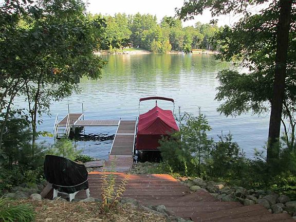 Enjoy Legend Lake with this quality built main lake home. Features an open concept Great Room with fireplace, all overlooking the lake, plus a 4-seasons room, 2 spacious bedrooms, 2 full baths, 1st floor laundry room, finished family room in basement, 2+ attached garage, all setting on over 100 feet of gorgeous main lake frontage. You only need to bring food and personal items to enjoy your first day, as included with the price is the pontoon, the canoe, miscellaneous lawn equipment, all furniture, some cookware, some dishes and also sprinkler and alarm system.