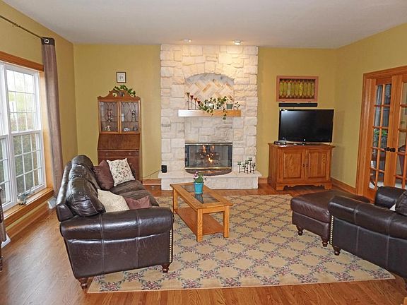 Great home and setting on over an acre lot in the Village of Merton! Spacious interior boasts family room with gas fireplace. French doors lead to separate living room. Large kitchen offers hardwood floors, center island snack bar, SS appliances included, and nice size dinette area. Additional formal dining room. Upper level bedrooms includes the master suite with walk-in closet and dual sink vanity in master bath. Lower level has finished rec room, craft room or office, and plenty of storage and workshop space. Huge 3.5 car attached garage. Great lot with level back yard and relaxing patio!