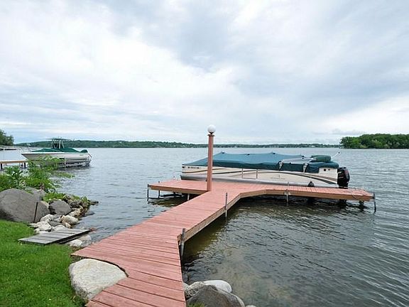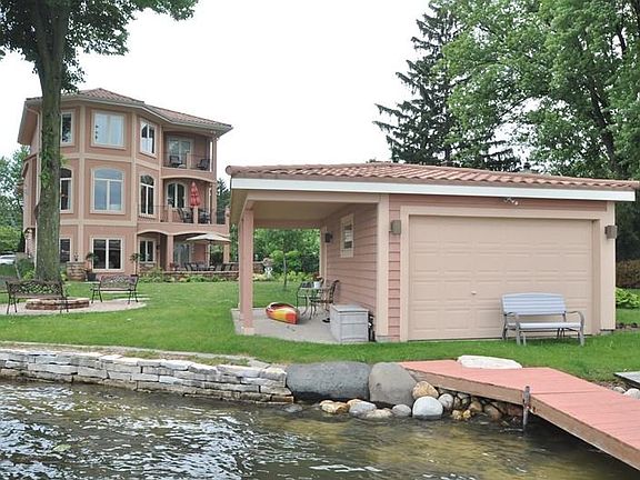 Outstanding lake views from all 3 levels. Boat house included. Builders personal home. Quality features include:granite hickory flooring tile maple cabinets wrought iron accents fireplace. Master suite features private deck sitting room walk-in-closets tiled shower stall and Heated floors.Central vacuum finished exposed lower level walk-out with family room and wet bar area.Stone patio with fire pit.Must see to appreciate this beautiful home. patio
