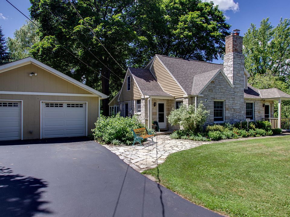 Classic Cape Cod on a beautiful 1 acre lot in the heart of Lake Country. The new, gently curving driveway, leads to this attractive 3 bedroom home. Seller has loving cared for & updated this home while maintaining & enhancing the inherent charm of the 1940's build. Comfortable living room includes a corner natural fireplace & hardwood floors. A custom remodel to the kitchen created ample storage in the maple cabinets & lots of counter space. Lovely dining room with wood floors & BICC opens via French doors to the amazing 3 season room. A cozy den & half bath finish out the first floor. Upper level contains 3 bedrooms & a remodeled full bath. 26 x 13 Knotty Pine rec room & 2nd half bath in the LL as an added bonus! Huge yard can't be beat & includes a storage shed. A true gem w/low taxes!