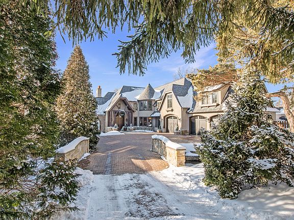 Situated on a picturesque 1.4+ acre lot with over 125 ft. of frontage, this stunning custom build on Pewaukee Lake affords luxury waterfront living all year round. No detail overlooked and no expense spared as only the highest quality materials, fixtures and finishes were used in this home's masterful construction. This rustic contemporary residence features an impressive great room with soaring 17 ft. wood-beamed ceilings, a chef's kitchen, a main floor master retreat, four guest suites, two offices and an exposed lower level living space with home theater and second full kitchen. Several outdoor living areas, a hot tub, a lakeside cabana and second 3 car garage provide plenty of room to enjoy the outdoors and store toys. From its location to impeccable design this home is truly unmatched