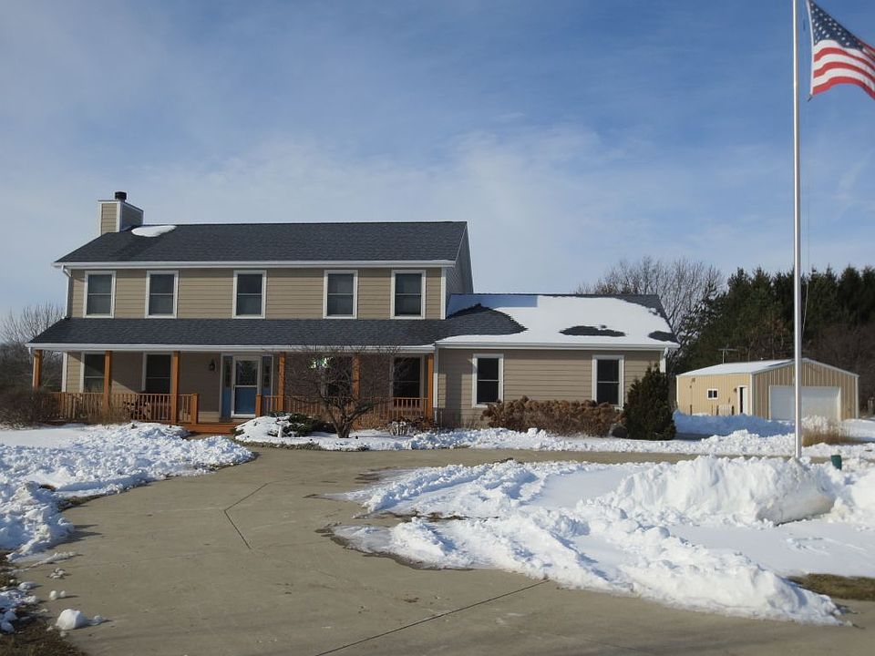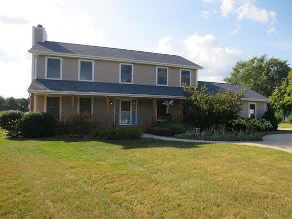 Nestled on 3.5 acres of manicured lawn, mowed trails, natural grasslands & surrounded by hundreds of evergreens this attractive colonial is what you've been waiting for. Enjoy the warmth of a natural fire from the beautiful stone fireplace. The kitchen features a center island, patio doors & CT flooring. Entertain in the professionally finished LL Rec Room w/wet bar & full BA w/whirlpool tub. The 25x30 pole barn is well insulated & has a wood burning stove; Observatory/shed is 10 x 10 w/retractable roof.