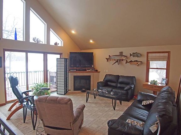 Gorgeous lake front/lake access home on Pewaukee Lake! Enjoy beautiful lake views & shared frontage lot right outside your front door! Home boasts open concept w/cathedral ceiling & wall of windows toward the lake. Kitchen w/all the upgrades including granite counters & breakfast bar. Corner gas fireplace in great room. Main level w/rec room, full bath, & w/o to lakeside patio. Maintenance free lakeside deck. Affordable taxes. Great location! Heated Floors. 1/4 owner in a lakefront lot w/27 ft frontage.