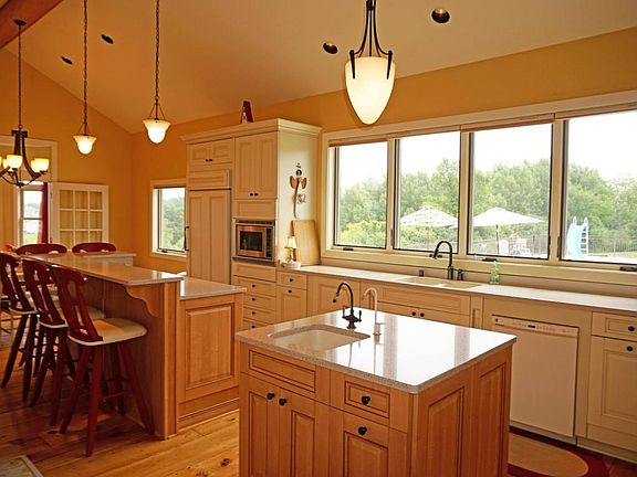 Spectacular 4BR ranch home on over 3 acres with relaxing in-ground pool and incredible elevated views! Enjoy this convenient yet private location surrounded by nature. Spacious interior is loaded with upgrades. Amazing kitchen has cathedral ceiling and 2 islands. Sun room with walls of windows. Large great room with Hickory floors. Master suite features huge walk-in and luxury bath. Lower level theater room and family room with full size windows. 2 fireplaces. Incredible pool with auto-cover. A must see!
