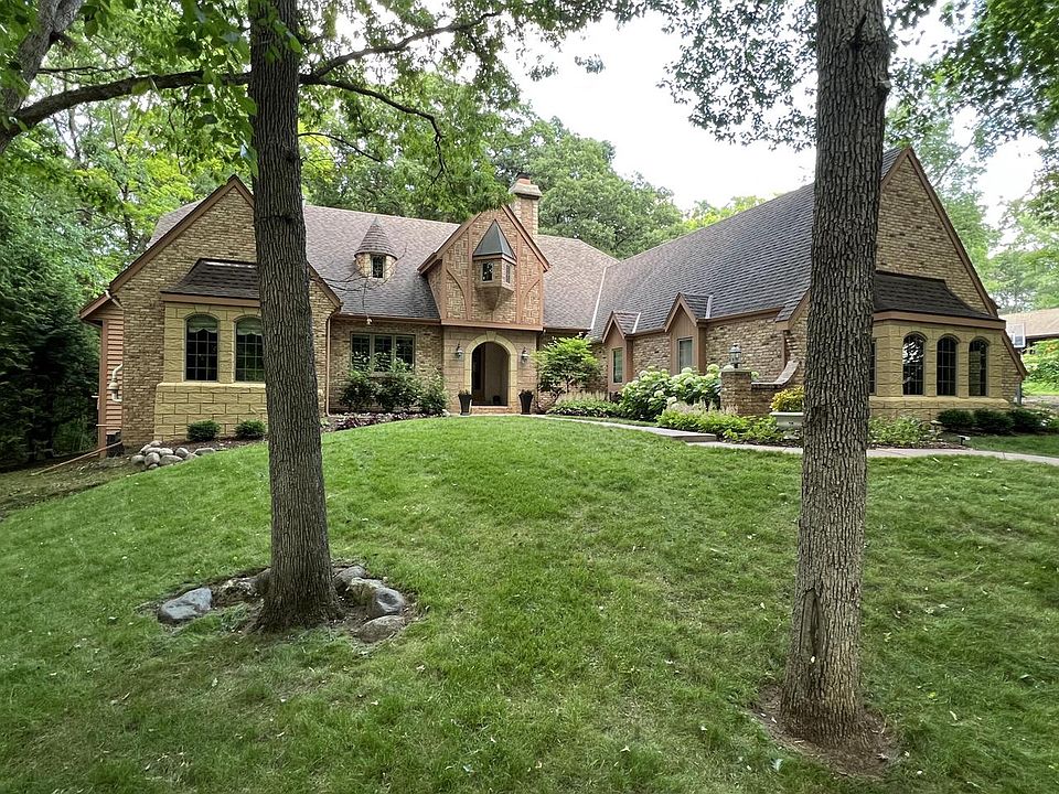 HARTLAND/MERTON Set in Arrowhead/Swallow SD, this Tudor is sure to impress with high-end quality and attention to detail. As you pull up, the words ''custom build'' immediately come to mind as you take in the magnificent exterior which incorporates the use of different brick, stone, arches, hip roof lines & even turrets to give the home distinct & unique charm. The home features 4 BR's, 4.5 BA's & 4200 sq ft of living space including a Great Room w/ soaring cathedral ceiling, formal Dining RM, beautiful KIT w/ custom cabinets, 3 BRs on the main floor and 4th BR suite on second floor. Second floor also has turret reading room with gas FP. 4 season room overlooks the wooded lot. Finished LL is perfect for entertaining. Has 3.5 car attached GA and serene wooded lot.