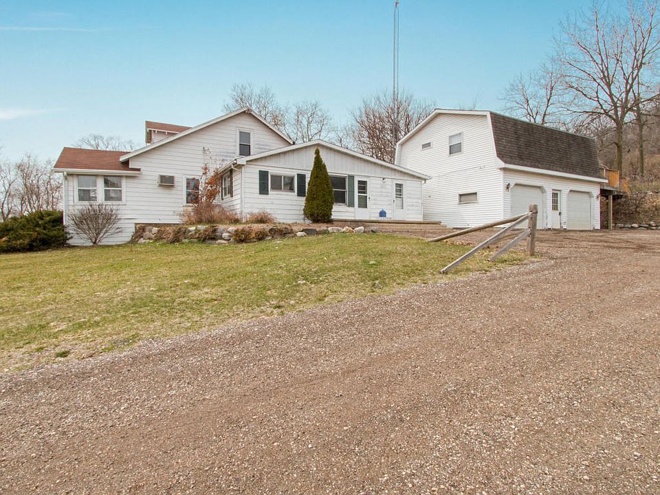 Country setting just minutes from Lake Geneva. This farm house has had several updates over the years and features a spacious kitchen, wood burning stove, main floor laundry and a large upper level with endless options for additional bedrooms or living space. There is a big bonus with an adorable home office, art studio or man cave over the 2 car garage. Almost an acre lot with fire pit, trees and hillside views of the country landscape and lots of trees. Take a look at this unique property. Plenty of space for all your toys and hobbies.