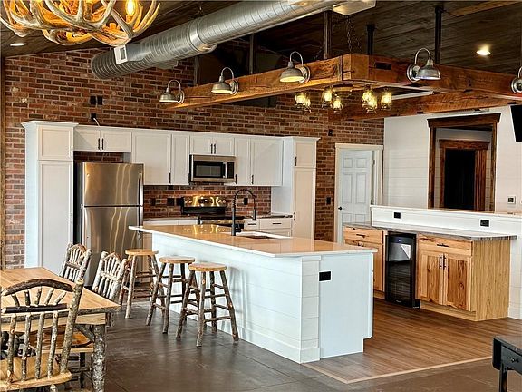 Potentially multiple use property! Rare opportunity to own this low-elevation property on highly sought-after Long Lake. Built in 2022, the main structure has 1,920 sq ft of space with high-end finishes throughout. Highlights include stunning vaulted rustic ceilings with exposed beams, an impressive kitchen and dining area, and open-concept living spaces bathed in natural light—perfect for relaxing or entertaining. The exterior offers LP SmartSide siding and a spacious concrete patio ideal for grilling and enjoying gorgeous sunsets over the lake. The property also includes a charming 395 sq ft guest cabin, providing plenty of space. Long Lake offers 19 miles of excellent fishing, boating, scenic undeveloped shoreline, sandbars, a marina, and several boat-up restaurants & a golf course. Located in a prime recreational area, this property also provides direct access to snowmobiling & ATV trails right out your door.