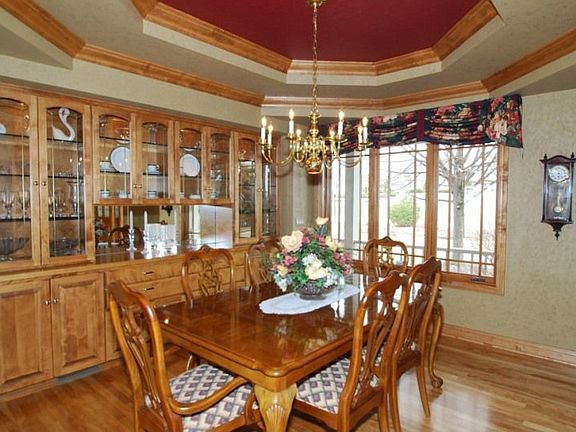 g the finest materials, this builder's custom home will fill all your wishes. Amazing views from all angles on this beautifully landscaped three acre setting. A wall of windows welcomes you in to the two story great room with gas fireplace and entertainment center. French doors off the foyer open to a well appointed office with cabinetry for computers and files. Birch flooring runs from the formal dining room to the smartly styled kitchen. Chef's dream with double ovens and large island. The master suite is appointed with a luxury bath and private hot tub room with deck. The lower level boasts a wall of windows, family room with fireplace, wet bar, full bath, patio doors open to a fourth bedroom with walk-in closet. Glass doors to the patio create potential for an in-laws suite. Workshop with heated flooring and 42 foot deep lower garage. All the quality extras such as maple cabinetry, granite, surround sound, heated tile floors, custom wall and window treatments. This one tops them all.