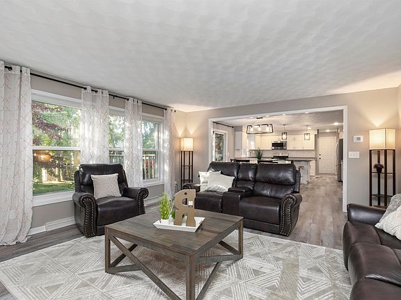 Stunning 2 story! Step inside to a bright open foyer leading to a luxurious family room or adjacent office. Living Room features a gas fireplace that extends to the eat- in Kitchen complete w/ hard surface countertops, center island, white painted cabinetry & tile backsplash. Dining area features patio door that opens to the 2 tiered deck overlooking the beautiful backyard. Convenient half bath and laundry room completes the main floor. Open staircase to 3 bedrooms and full bath w/ dual vanity and primary bedroom with large walk-in closet, full bath w/ jetted tub and separate shower. Additional space in the lower level offers a spacious rec room w/ egress windows and work out room that could be a 5th bedroom. Attached 3 car garage and landscaped lot. Showings start 9/9/2022.