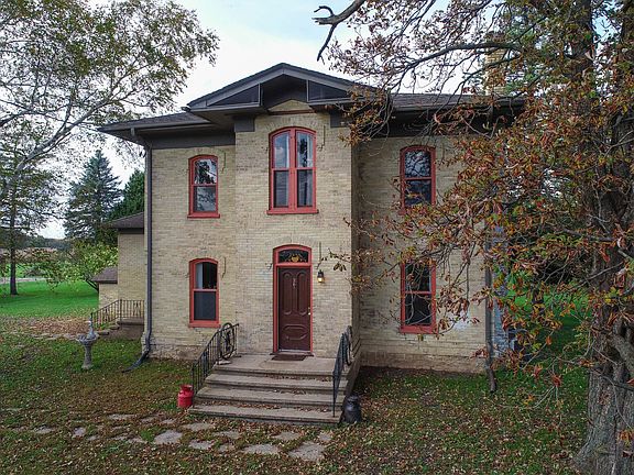 Grace, charm, and character are found in this Historic 1868 Federal Italianate style Cream City Brick Farmhouse! Interior features include high ceilings, front foyer with grand staircase, tin ceilings, butler's pantry, and more. Main floor master bedroom. Upper level offers 5 additional nice size bedrooms and an additional den. Set on 4.26 acres with a huge 115 x 35 2-story barn. Lots of possibilities including workshop, storage, and horses. Great location close to Lake LuLu and Kettle Moraine State Forest! All new as of 2014: Heat /Central Air, New Furnace, Water Heater, Ductwork, All Exterior Walls Insulated, Hardwood Flooring, Kitchen Updated. Motivated seller will entertain closing cost credit for carpet and paint updates.