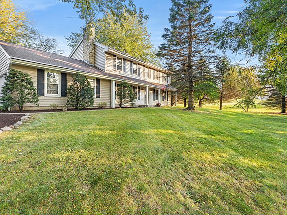 Spacious 4 Bedroom Home on 3 acres awaits with gorgeous yard and room for your horse. Formal Living and Dining room as well as cozy den with natural fireplace. The kitchen is updated with new cabinets and has a large pantry. Upstairs there are 3 generous bedrooms and a Master suite with attached bath. The basement Rec room is newly updated with built in cabinets and wet bar. A large 3 season sunroom and attached garage complete the property. The property has a barn with 3 stalls and a shed for storage.